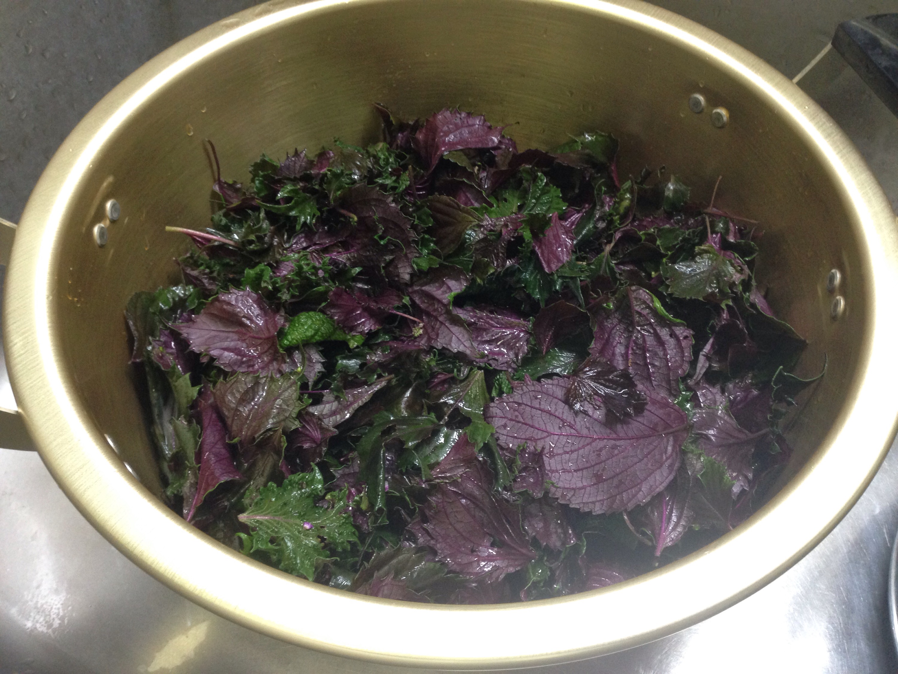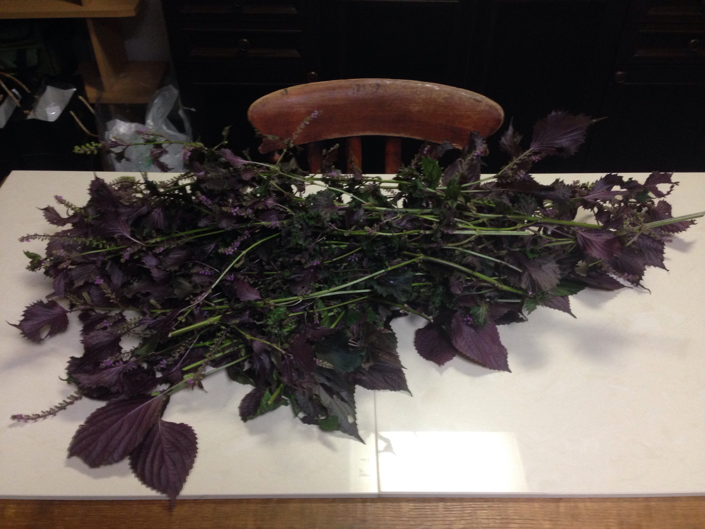 庭に茂る青じそと赤じそ。もったいないので、取り敢えず赤じそでシソジュースを作ることに。