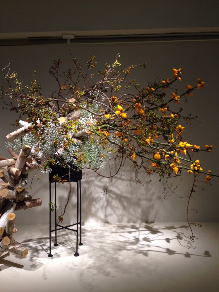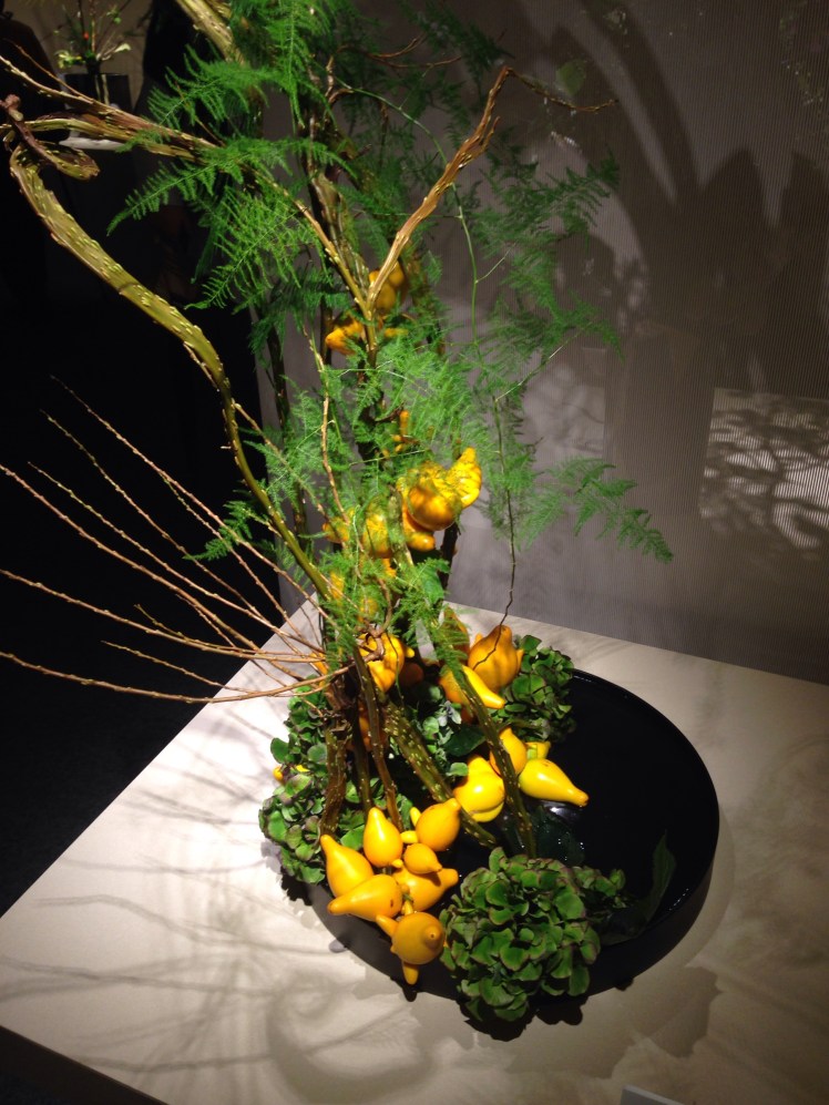 このブログで近所の畑で栽培されているカナリアナスについて書いたことがありますが、昨日、日本橋高島屋で開催されていた日本いけばな芸術展に行ったら幾つかの作品に使われていました。