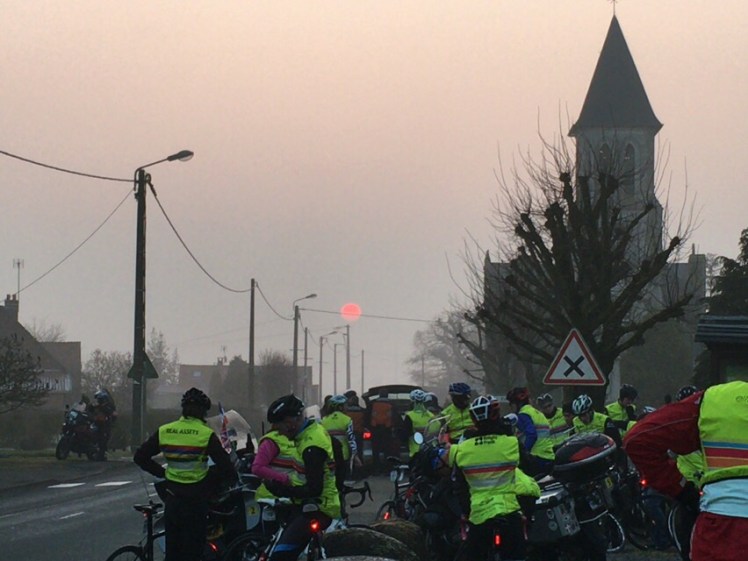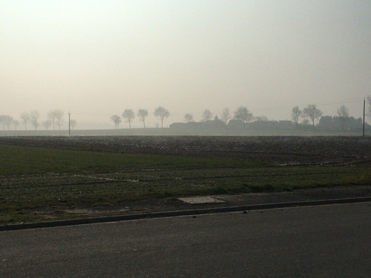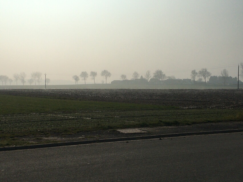 The field was frozen. Very foggy then we could see the sun directly as following photo.