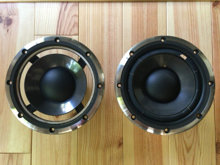 実家から持ってきたOnkyoのD-77XD 。購入して20年以上経つのでコーン周りのエッジ部分が硬化してヒビが入りポロポロと落ちてきました。