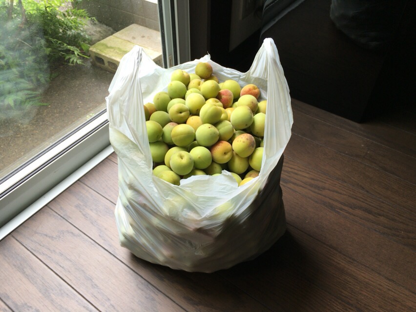 梅の収穫 投稿日: 2016年6月5日2016年6月6日 投稿者: Hiroaki Fujii 今日はあいにく小雨が降ったり止んだり。自転車は諦めて庭仕事に集中することに。 先週は家の裏の梅の木から収穫しましたが、今朝、家の前の道路に降りてみると、梅の木が道路に覆いかぶさるように伸び実が鈴なりに。 先週より黄色く実も大きくなっていました。脚立を使って実を収穫した後、枝をばっさり。 道路上はなくなりました 枝は焚付け用に切って乾燥させます。結構な作業。かなりの量が採れました。 7.5kgありました。家に帰ったら梅酒を作ります。 共有: Facebook で共有するにはクリックしてください (新しいウィンドウで開きます) Facebook いいね 読み込み中…