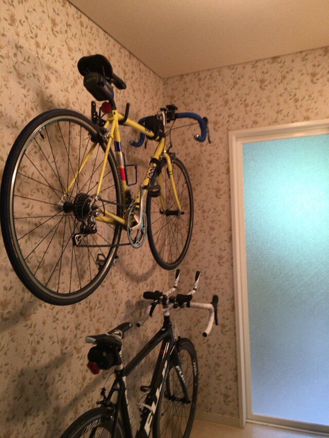 もう一つは、自転車の壁用ラックの取り付け。洗面所が広いので自転車置き場に。外に物置きもありますが、大事な自転車なので家の中に置きたくて。こちらは30分くらいで完了。すっきりしました。