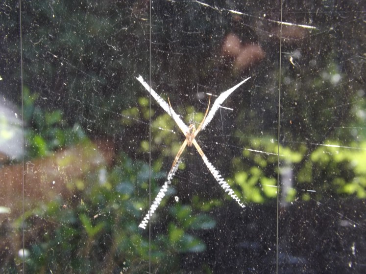 蜘蛛の巣に大きなX 投稿日: 2016年8月12日2016年8月12日 投稿者: Hiroaki Fujii 今朝、窓の方を見ると何やらXの形をした気になるものが。。 近づいて見ると。。。 窓ガラスの外側に蜘蛛の巣を張り、X型に更に白くなるように糸を巡らせています。そして、そのX形状に合わせ脚を2本づつ揃えて身体をX型にしています。調べてみると、コガネグモと言い、身体を隠しているのだとか。家の周り(家の中にも)にたくさんの蜘蛛がいますが、最近慣れてきて、その自然の知恵に感動すら覚えます 笑 共有: Facebook で共有するにはクリックしてください (新しいウィンドウで開きます) Facebook いいね 読み込み中…