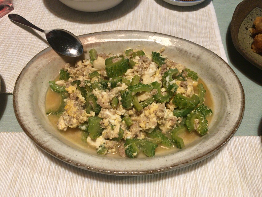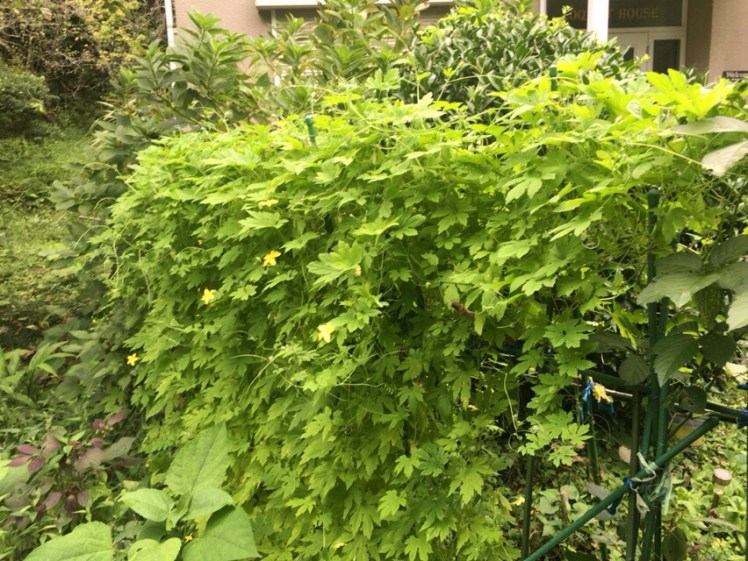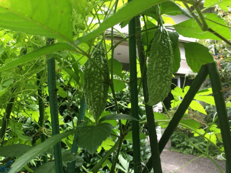 先週、ゴーヤについてはミョウガと一緒に触れましたが、実際はこんな感じで成っています。