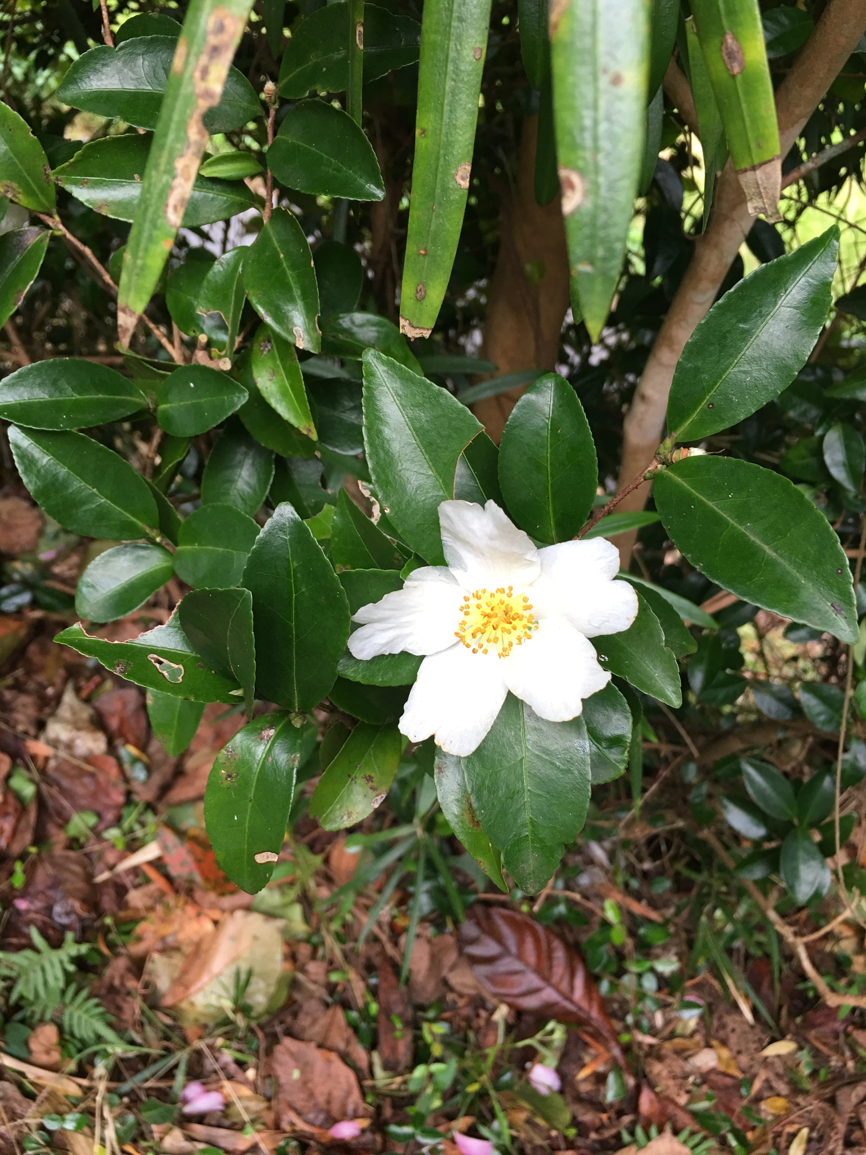 家に着くとさざんかの花が。スズメバチが花の回りを飛んでいて要注意でした。