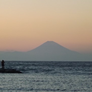 今日、夕方、買い出しを終えて車で家に帰る途中、前方に富士山が。慌てて車を止めiPhoneで撮影。 その後、急いで海辺に行ってみました。 こちらは先週と同じ北条海岸からです。