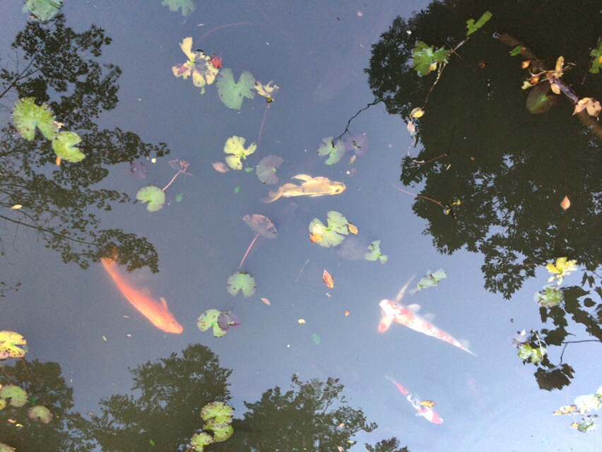 池には沢山の立派な錦鯉が。