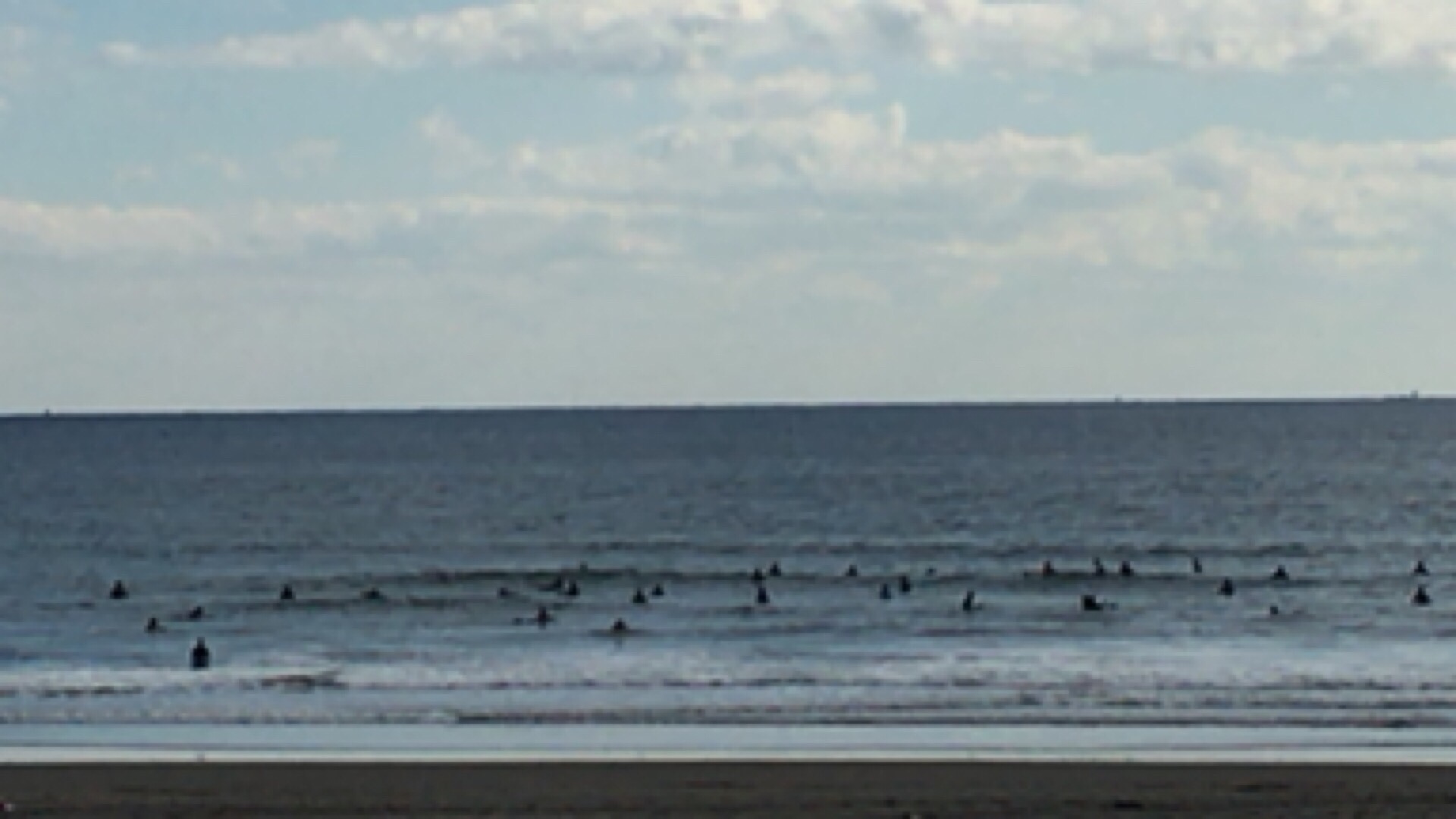 まずは昨日と同じ外房の海岸沿いをサーファー達を横目に北上。