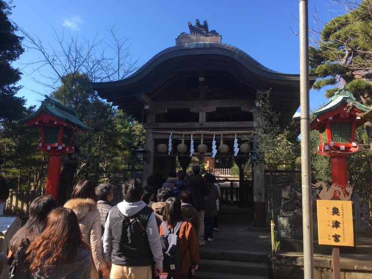 江ノ島に着いて、生まれて初めて江ノ島神社(奥津宮)まで行き、初詣のお参りをしてきました。