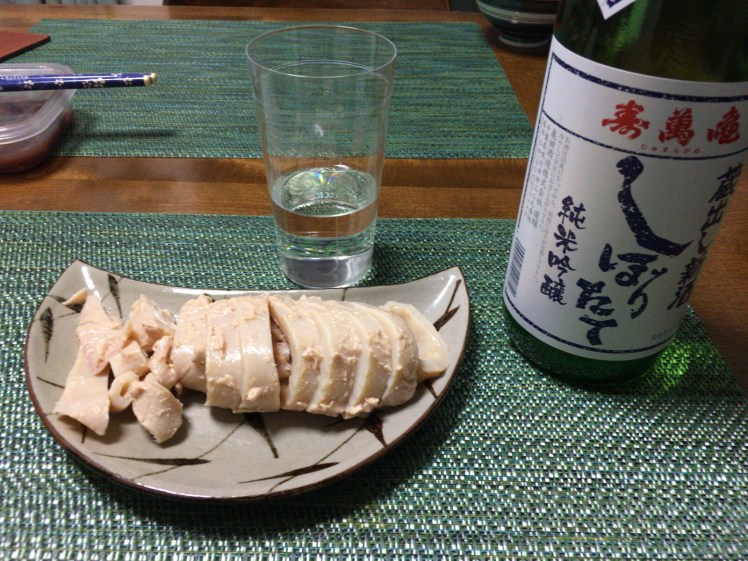 蔵出し新酒、フレッシュで香りもありさっぱり。実家から送って貰ったイカの粕漬けをツマに美味しくいただきました。旬のものっていいですね。無くなったら、写真右側のお米で作った焼酎です。楽しみ。