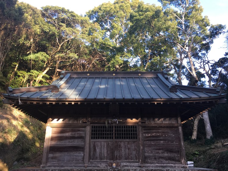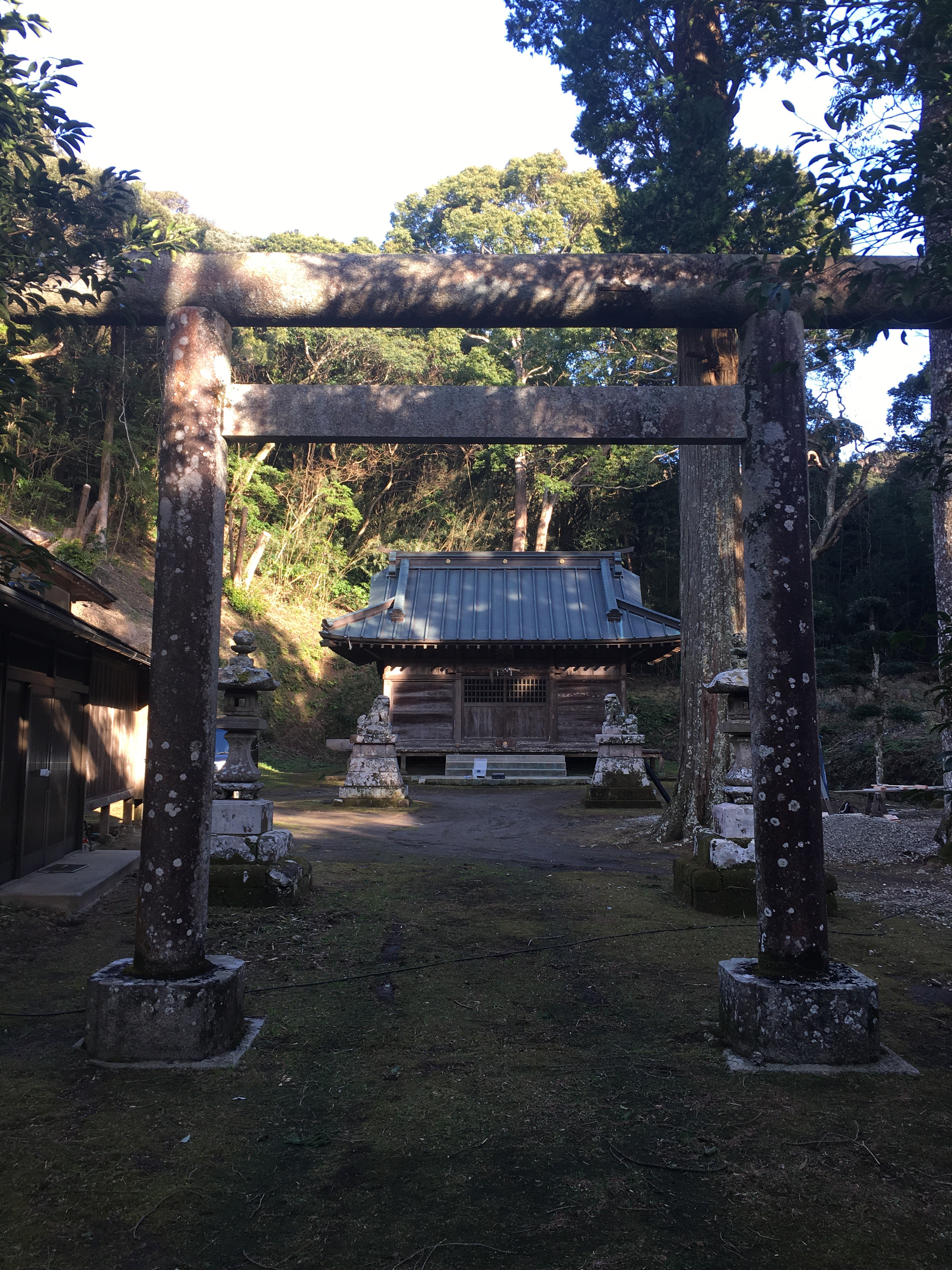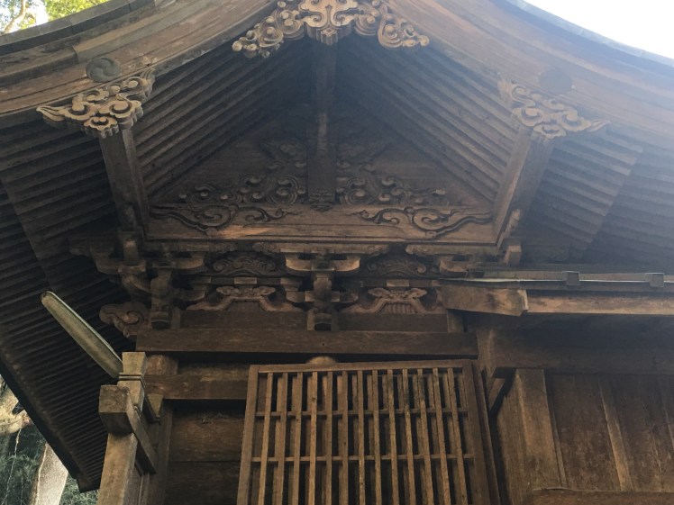 建物は小さいながら、綺麗な流れの屋根や軒下に凝った彫刻があり、なかなか趣のある神社でした。山の神を祀るこの辺りでも由緒ある神社のようです。今でも9月にある館山の大きなお祭り「やわたんまち」に神輿を出しているとのこと。私の家のある岡田と言う集落は人手不足で神輿は断念してしまっています。