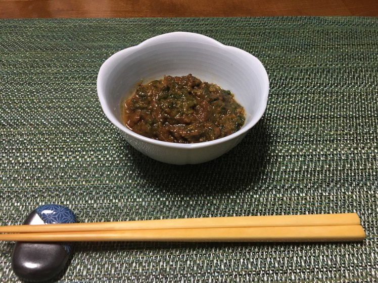 蕗味噌 投稿日: 2017年2月26日 投稿者: Hiroaki Fujii 昨日、庭の手入れをしていて蕗の薹が沢山花を咲かせているのを発見。ちょっと時期が遅かったと言う感じですが、なるべく開いてないのを選んで採取。 家に戻って蕗味噌を作ってみました。さっと茹でで水気を切り、すばやくきざんで胡麻油で炒め、味醂とお酒で溶いたお味噌を絡め砂糖を少々入れて味を整え完成。10分程度。ごはんに載せたり、酒のつまみに。春の到来を確認。 共有: Facebook で共有するにはクリックしてください (新しいウィンドウで開きます) Facebook いいね 読み込み中…