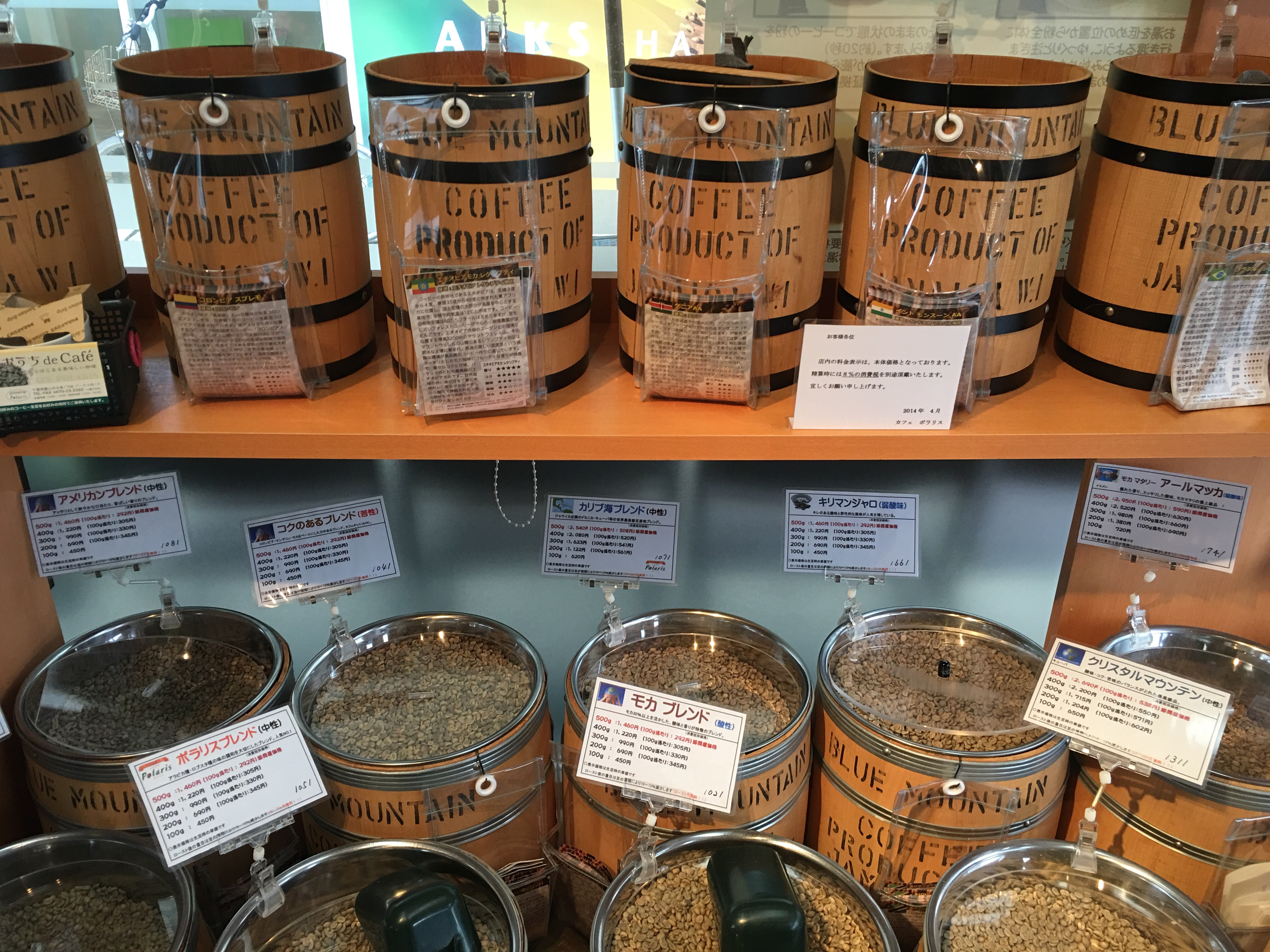 コーヒー豆は昨日、館山市内のポラリス珈琲さんに行きペルーと言う豆をエスプレッソ用にイタリアンローストで焙煎してもらいました。