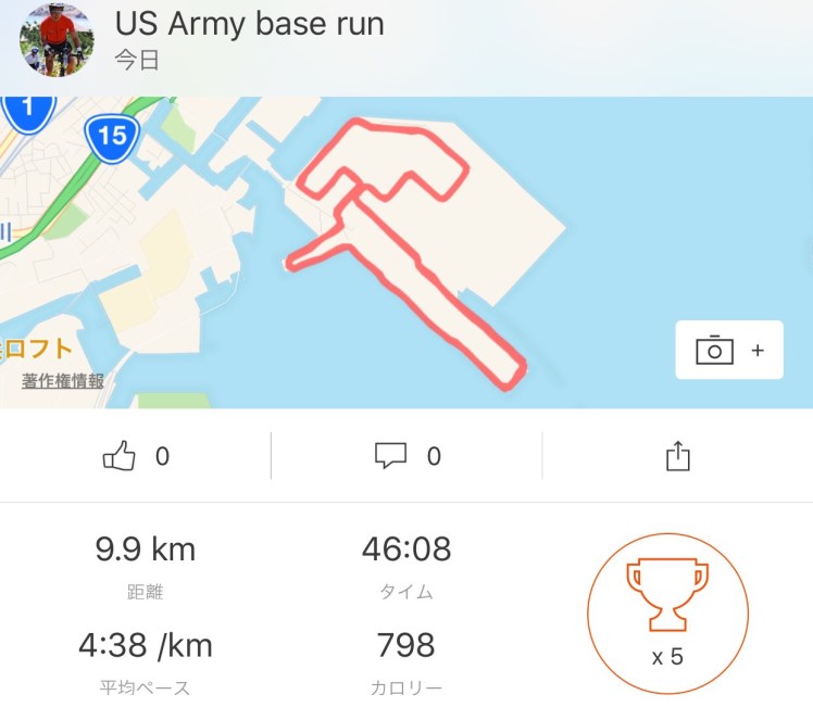 あいにくの雨でしたが、参加したのは基地内1周5kmを2周する10km。普段タラタラ走っているので良い練習になりました。