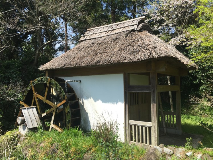 ちゃんと小川が流れ、回っていました。ただ、本来、水車は動力として例えば蕎麦を引いたりするのに使われるわけですが、ここはただ回っているだけのようでした。