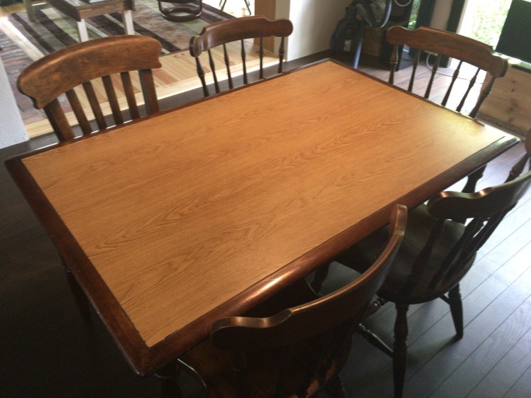 ダイニングテーブルは前のオーナーが残していってくれた物を使っていましたが、部屋の雰囲気に、より合ったものを見つけたいと思って探してはいたものの良いお値段のものばかりで、そんなテーブルに掛けるお金もないので、DIYでリニューアルすることにしました。