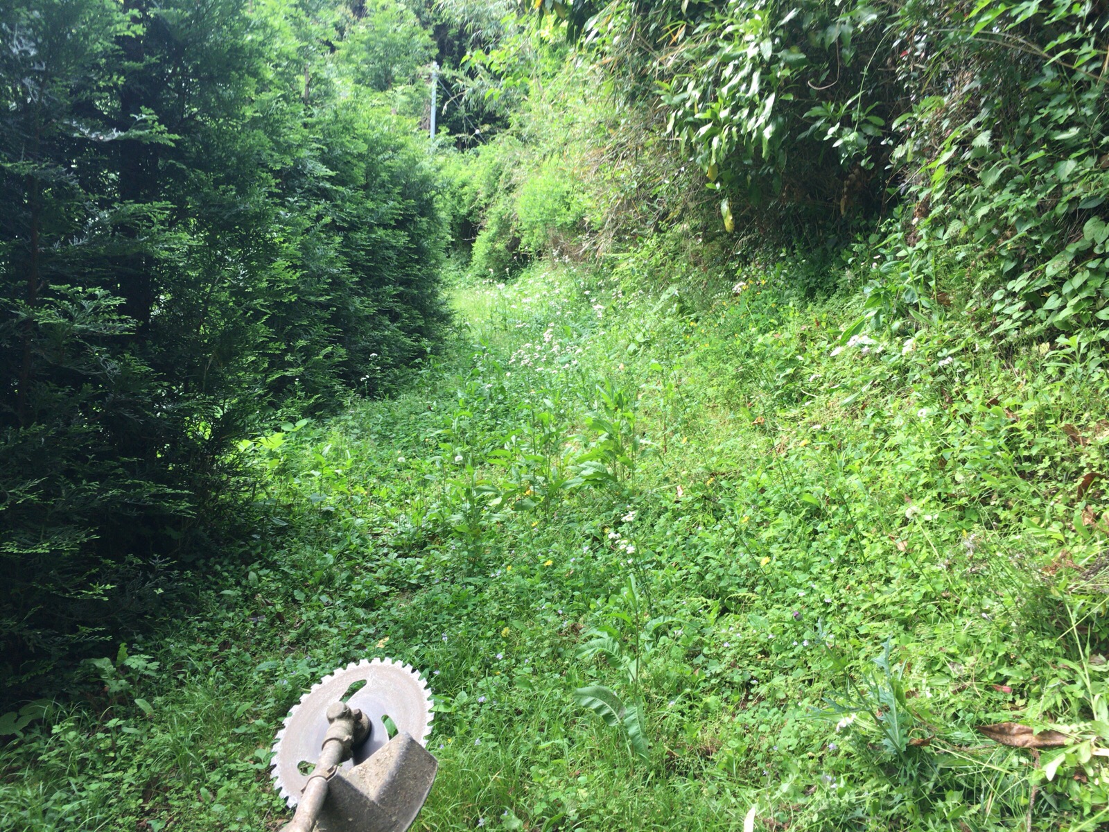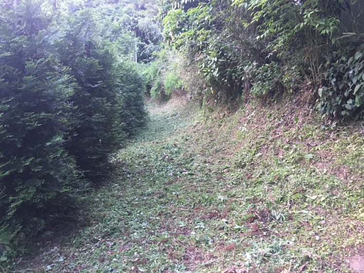 午後は草刈り。最初に家の敷地横の共同井戸への道。私の数少ない敷地外担当領域です。