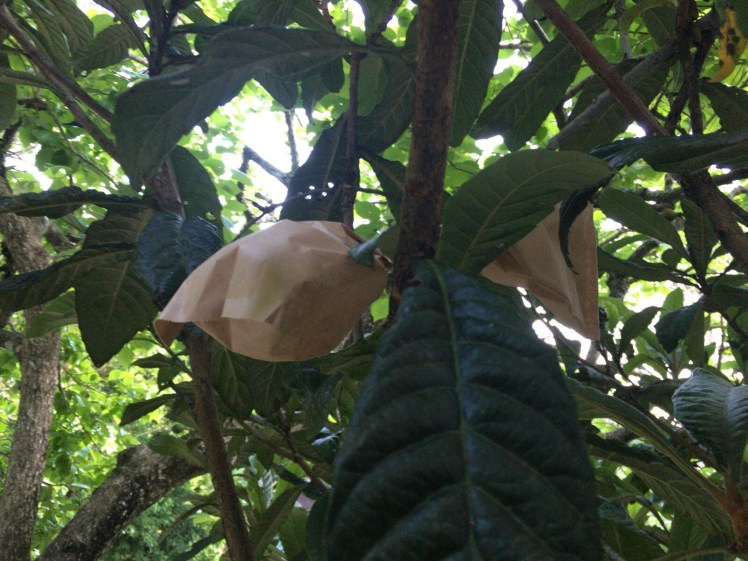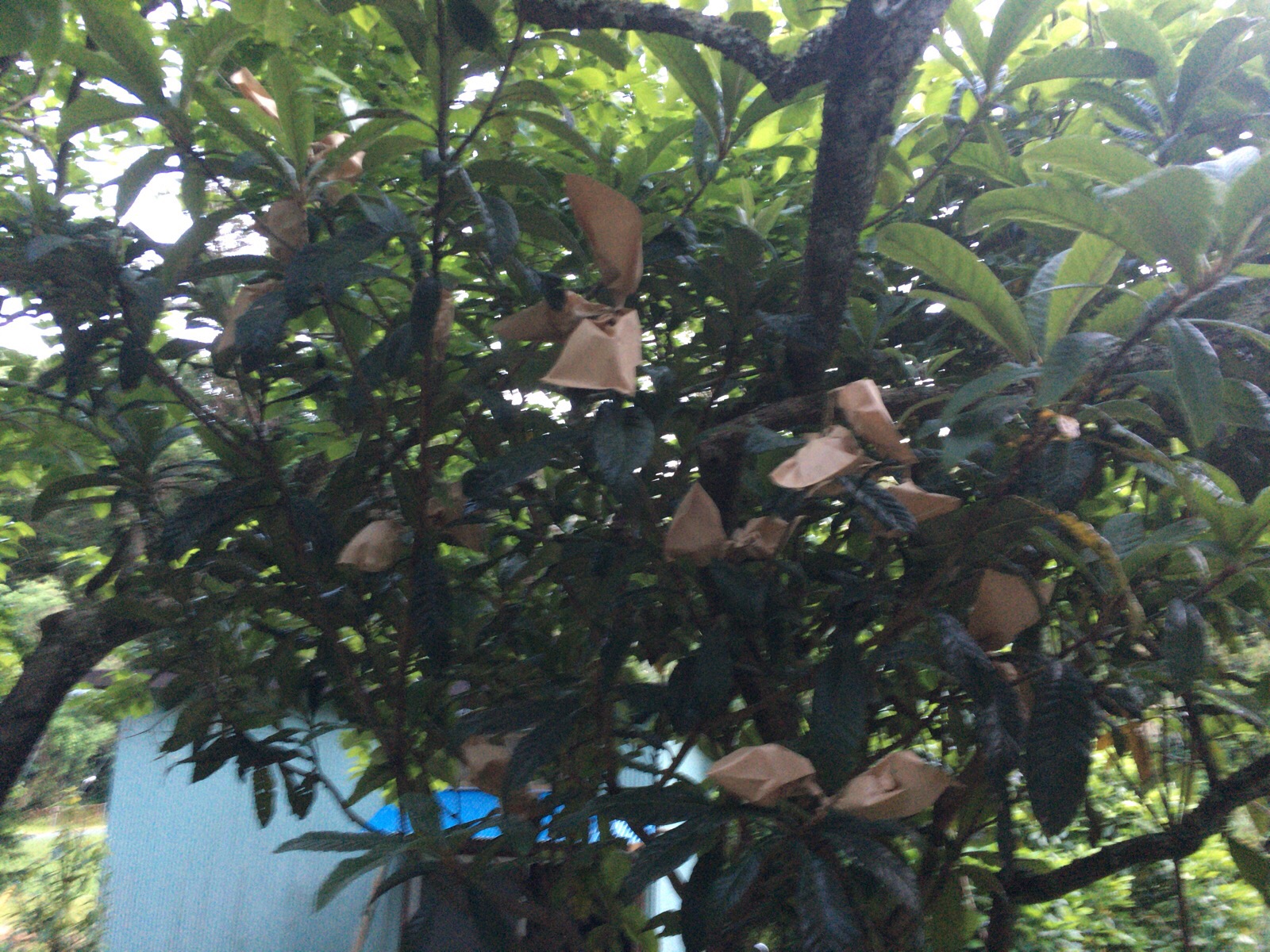 ビワの袋掛け 投稿日: 2017年5月21日 投稿者: Hiroaki Fujii うちの庭にビワの木が何本かあるので「Loquat House(ビワの家)」と名付けたのですが、昨年は鳥さんたちに食べられてしまったようで収穫できたのはたったの二つでした。 と言うことで、今年はちゃんと手を掛けてみようと、ちょっと遅かったのですが、今日、摘果して袋掛けしてみました。 先ずは近くのホームセンターで専用の袋を購入。 そして、沢山付いてる果実をひと枝、2、3個まで間引き。これが摘果前。 次が摘果後。 そして、袋掛け。 まだまだ手の届かないのがありましたが、それは鳥さん達にも味わってもらうと言うことで、それでも24個ほど袋掛けしました。 さて、結果はどうなることやら。楽しみです。 共有: Facebook で共有するにはクリックしてください (新しいウィンドウで開きます) Facebook いいね 読み込み中…