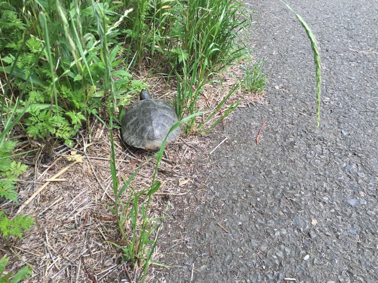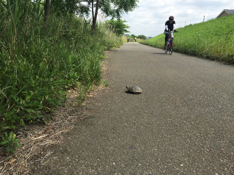 Turtle ahead! 投稿日: 2017年5月28日 投稿者: Hiroaki Fujii この週末は所用あって横浜で過ごしています。今日は午前中、家から着替えを背負って鶴見川経由で鶴見のジムまで15kmラン。ジムに着いて800mほど泳いで電車で帰ってきました。 鶴見川沿いのランの途中、前方に道路を横切る動く物体を発見。 近寄ってみると亀さんでした。 なんとも呑気な気分になりました。 共有: Facebook で共有するにはクリックしてください (新しいウィンドウで開きます) Facebook いいね 読み込み中…