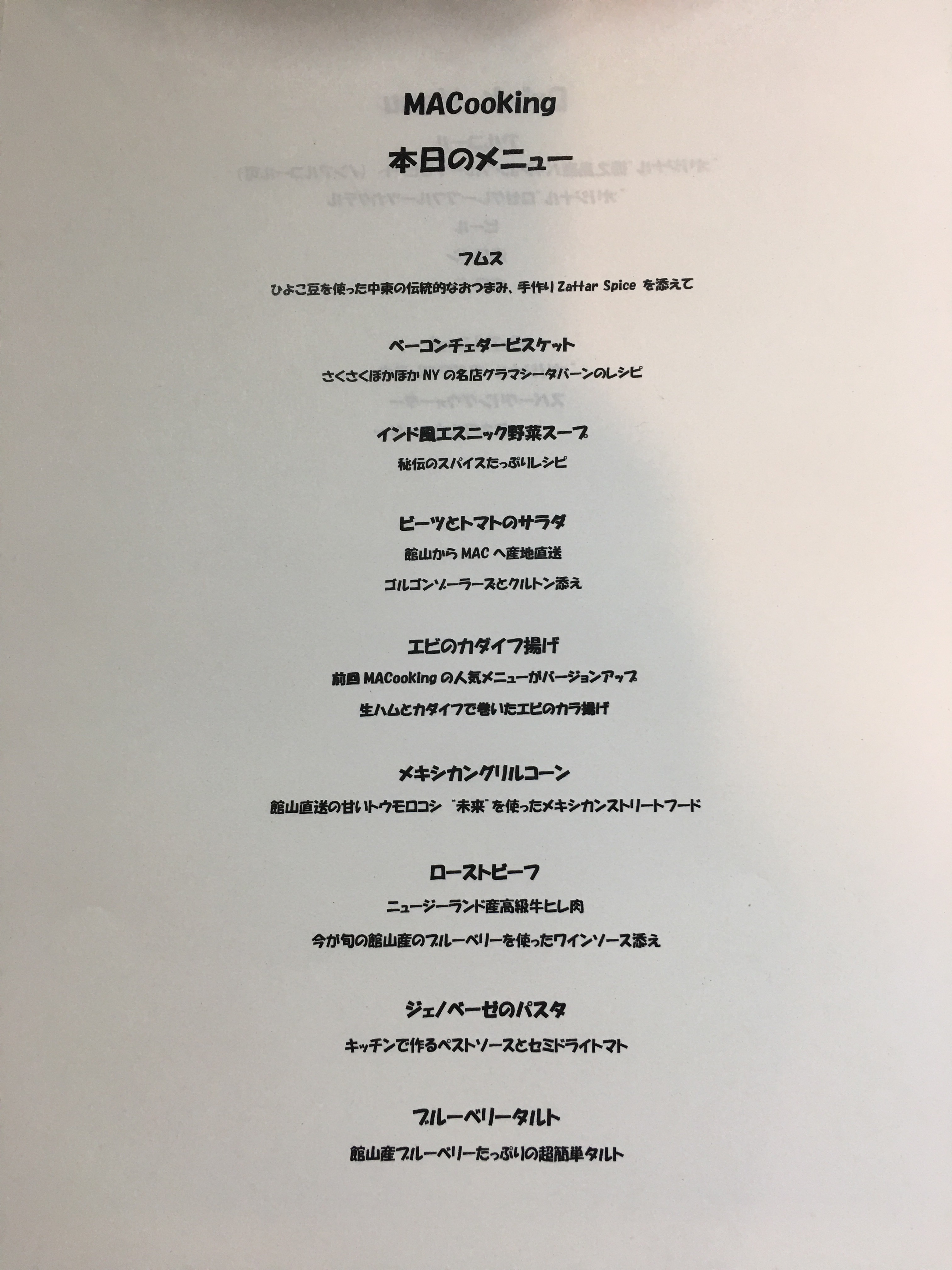 MACのメンバーの一人が丸の内での金融機関勤務を辞め、NYの料理大学に留学。今回、卒業し一時帰国すると言うので、私が食材の仕入れ係となり、館山の農家さんから直接、ビーツやトマト、トウモロコシ(未来)他野菜、また、ブルーベリーやミントを調達し、それら新鮮素材を使ってNYスタイルで料理を作ってもらい総勢19人で楽しみました。