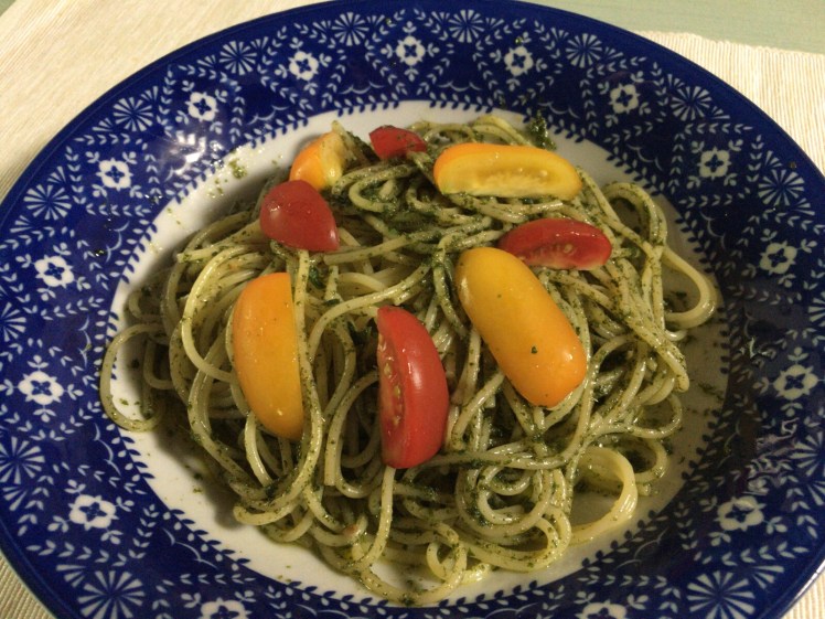 ジェノベーゼ館山風 投稿日: 2017年7月16日2017年7月16日 投稿者: Hiroaki Fujii 今日のお昼は午前中、「渚の駅たてやま」で仕入れた地場野菜で自作。お店には面白い野菜がいっぱいありました。 左端のスィートバジル、1パック100円。これを使ってジェノベーゼソースを作りパスタに。昨日買ったカラフルトマトをのせて出来上がり。 濃厚なバジルソースに甘みのあるトマトの酸味がさっぱり効いていい感じ。 昨日、地元産蜂蜜も入れて漬けたピクルスも美味しく出来ました。 気分はイタリアン。食後はエスプレッソを 笑。 共有: Facebook で共有するにはクリックしてください (新しいウィンドウで開きます) Facebook いいね 読み込み中…