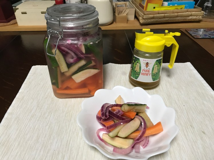 ピクルスのハチミツがけ 投稿日: 2017年8月12日 投稿者: Hiroaki Fujii 暑い夏。なかなか食欲も出ませんが、自分の最近の朝食マイブームはこれ。新鮮夏野菜のピクルスにハチミツを掛けていただきます。 野菜にお酢にハチミツ。身体に良くないわけはありません。ちなみにこのハチミツも南房総市和田町産です。 共有: Facebook で共有するにはクリックしてください (新しいウィンドウで開きます) Facebook いいね 読み込み中…