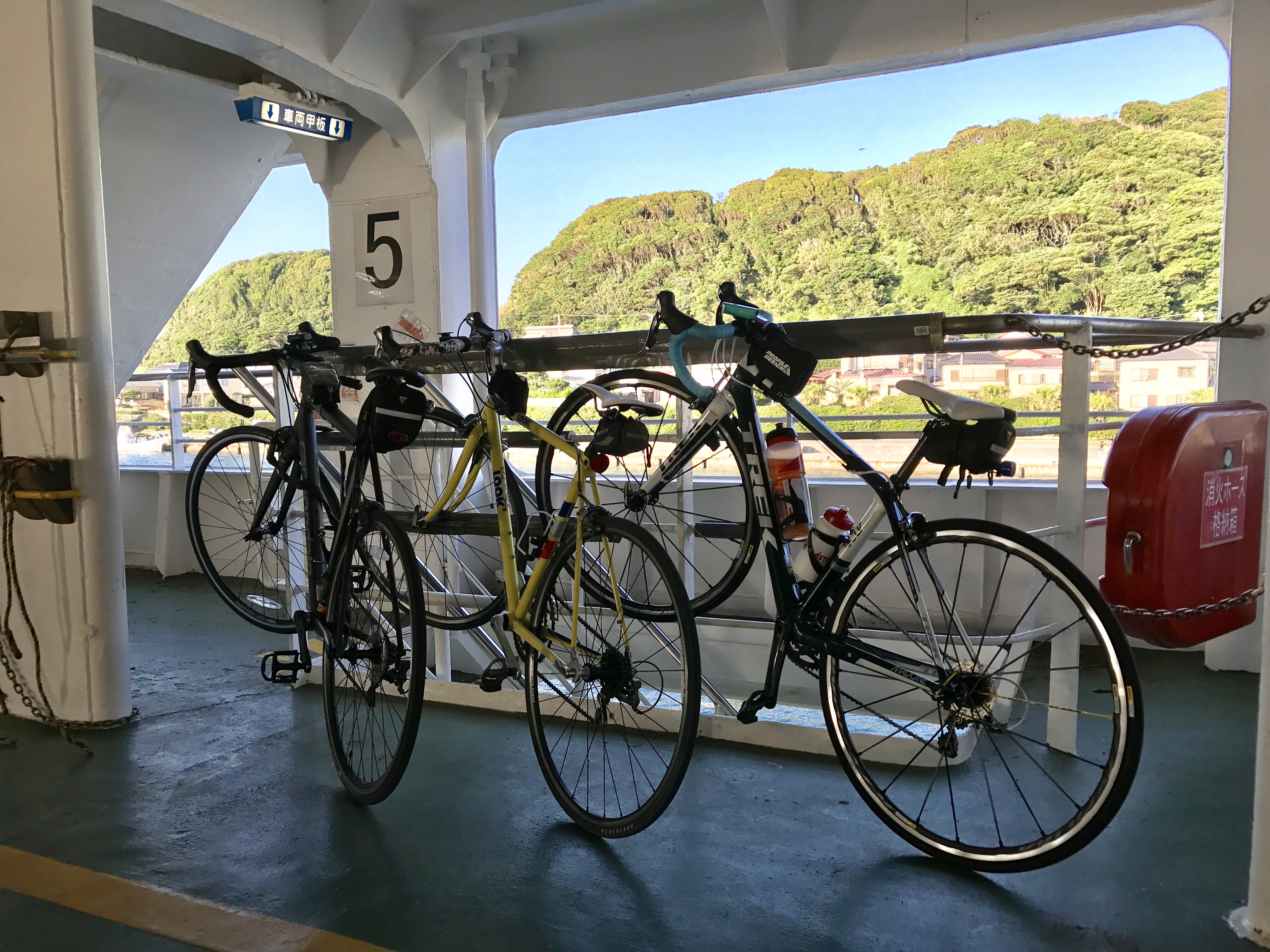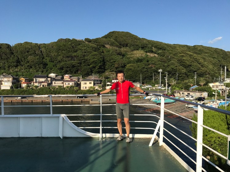 フェリー乗り場の金谷までは30kmほど。追い風で思ったよりかなり早く着いてしまい、通過して5kmほど先まで行って戻ってきました。自転車を乗せて。