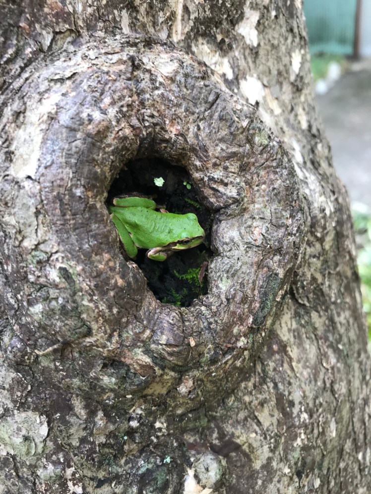 秋の陽気 投稿日: 2017年11月4日2017年11月4日 投稿者: Hiroaki Fujii 今日は午前中、ここのところの連続の台風で荒れに荒れた庭の手入れ。散乱している折れた木の枝や雑草取り。切りがないです。 溜まってた落ち葉も綺麗にしました 強風でデッキから落ち粉々になった植木鉢 作業していると、ふと、カエル君が。隠れてるつもりでしょうかw?私の親指ほどの可愛いやつです。 庭には赤とんぼやナナフシが。 ナナフシにしては太い気もしますが。。 玄関にも来訪者が。 この他にも別にカマキリを2匹見かけました。昆虫たちも台風開けの心地良い秋の日差しを楽しんでいるようでした^ ^。 共有: Facebook で共有するにはクリックしてください (新しいウィンドウで開きます) Facebook いいね 読み込み中…