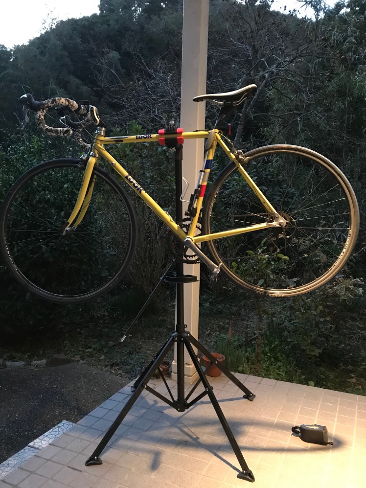 先週、雨の中、ステーションライドというイベントでしたが、急ぎで家に戻らなくてはならなかったので、汚れた自転車、軽く水気を取るぐらいでそのままで帰ったので、今日はクリーニングとメンテナンス。仲間には常に丁寧に手入れして、いつもピカピカにしている人もいますが、自分はどちらかと言うと手や服が油で汚れるこの作業が苦手でチェーンやギアがかなり汚れていました。そんな苦手なメンテナンスを少しやる気にさせるため、今回、メンテナンス用のスタンドをネットで購入してみました。