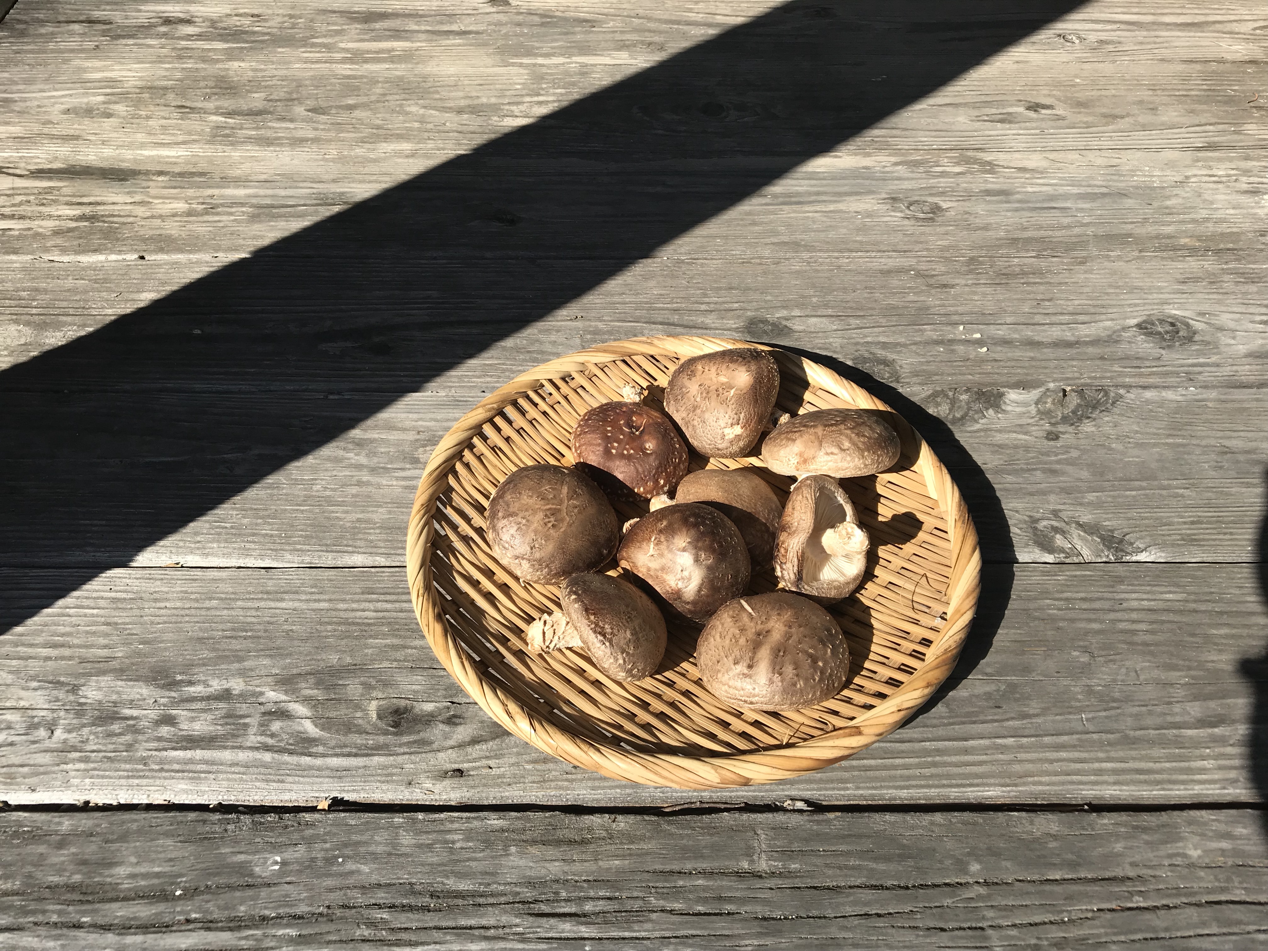 縁側では椎茸が干してありました。