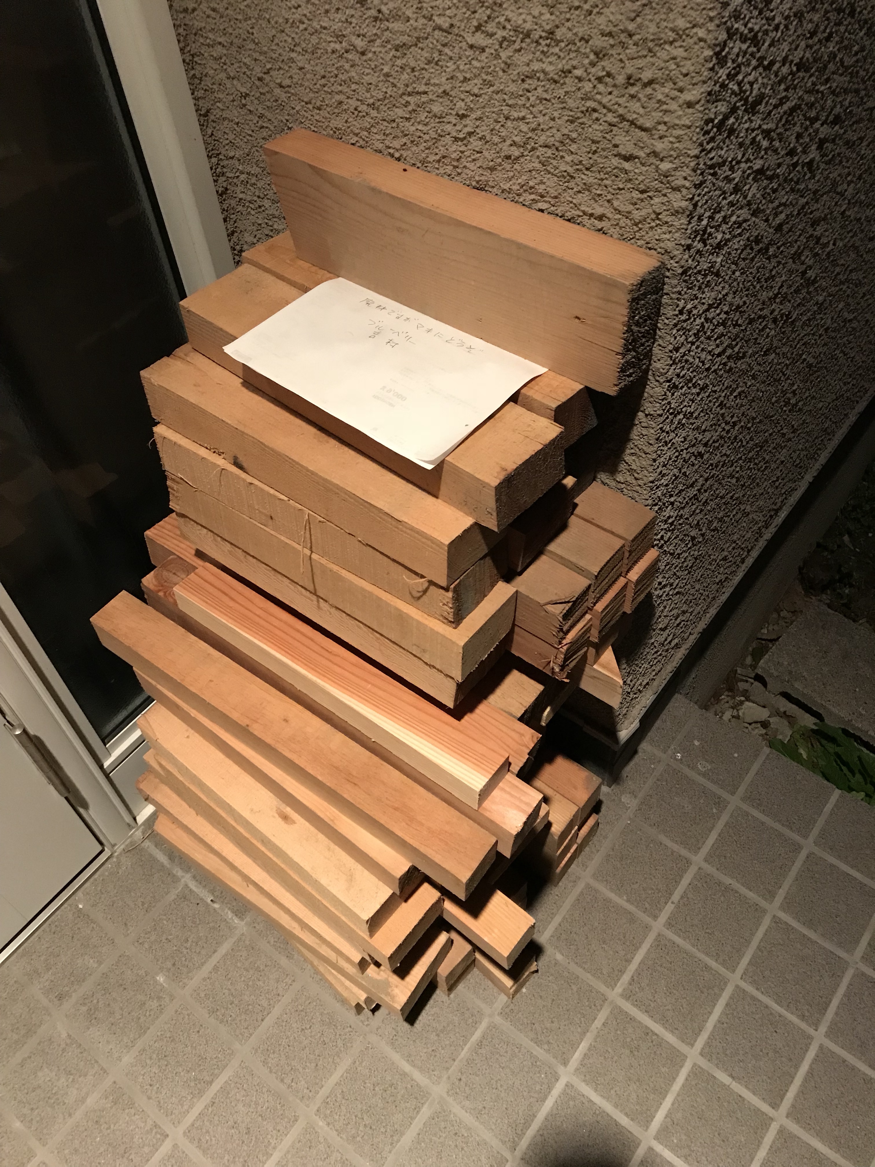 昨日朝、館山の家に着くと玄関に廃材が積まれていました。