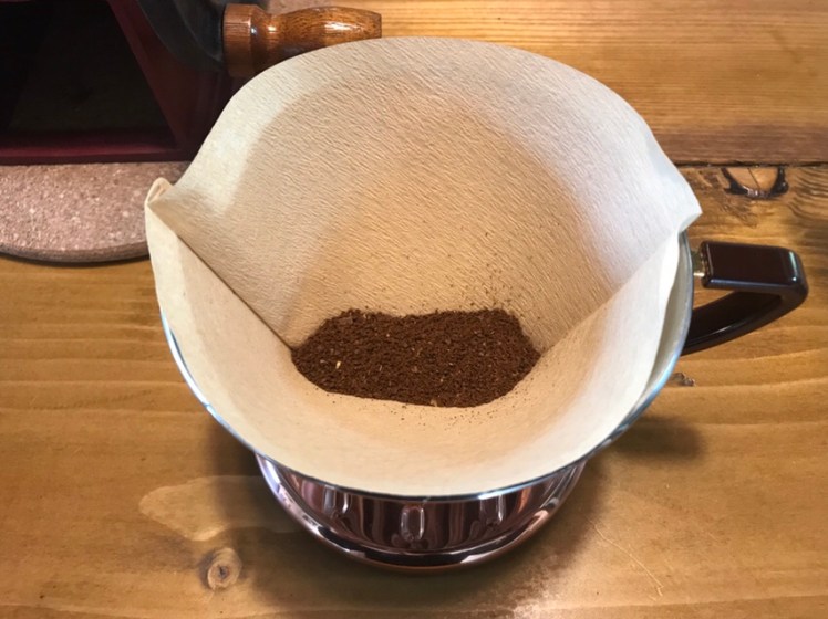 新品の歯の穴と軸の相性が悪く若干ヤスリを使いましたが、無事作業完了。試しに挽いて粉の粒を確認し一杯飲んでみました。うまい!