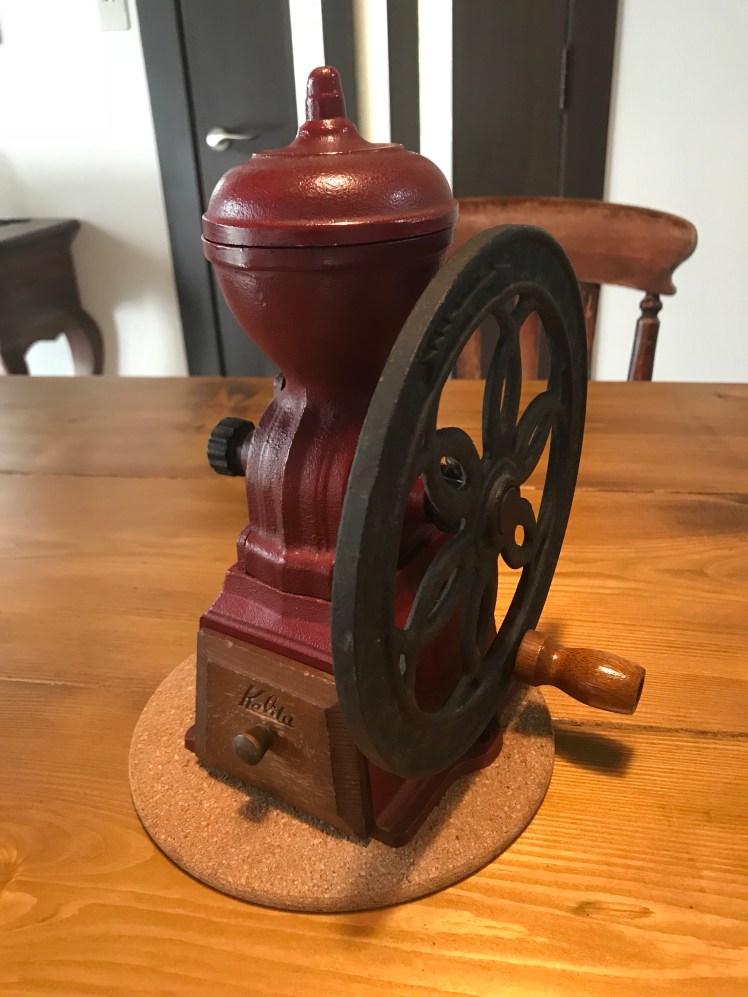 ネットから中古で買ったこのミル。Kalita製で一旦製造廃止になっていたものが、最近コーヒーブームのせいなのか復刻して今、25,000円で再販売となっています。