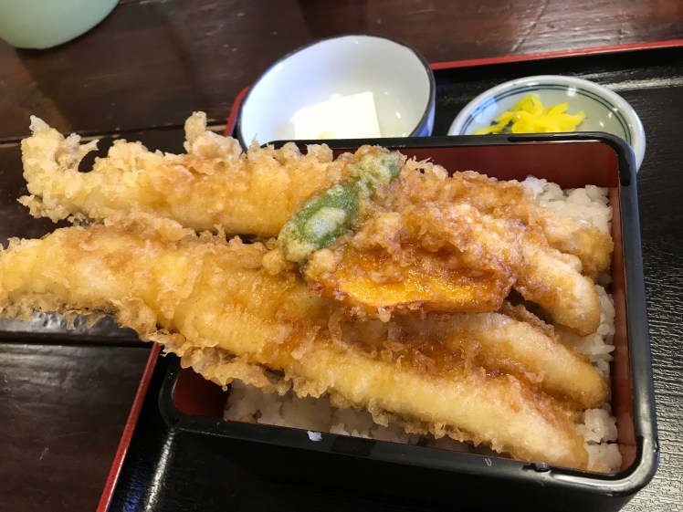 お重のあなごはトロトロ、天丼のあなごは中がフカフカ、衣がサクサク。家内も満足でした!