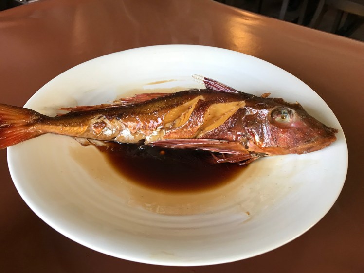太いヒジキも柔らかく絶品。カニやホウボウは言うまでもありません。飴色に輝く煮付けのコツを聞いてみると、シンプルに水と醤油と砂糖だけで煮ていると。ただ、煮汁は取っておいてまた次回使うんだそう。一般家庭の場合は冷凍しておいて次回足して使うと美味しくなるそうです。三浦半島に行くと行くあらさき亭、お勧めします。