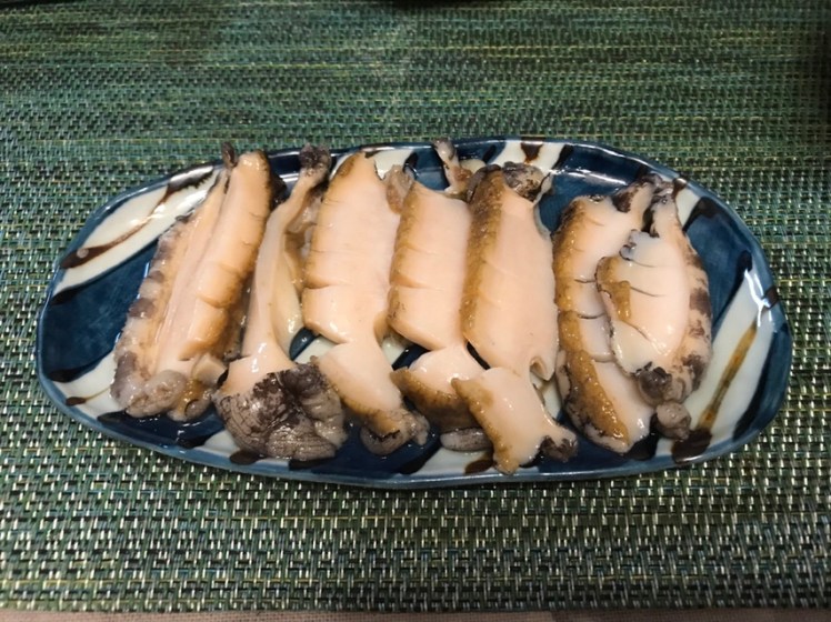 生産者の説明では「津軽海峡の黒潮と親潮が流れ込む栄養豊富な海で育った真昆布を与えて育てた“エゾアワビ”」ということで期待大。