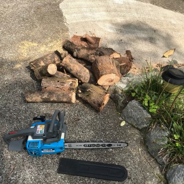家の敷地斜面から出た枝が道路の上まで伸びてちょっとしたトラックだと引っかかるくらいになっています。 迷惑なので切って処分しなければと業者さんに頼めば早いのですがお金がかかるので自分でやることに。 長いポールの先に付いた小 … 続きを読む : 木の伐採