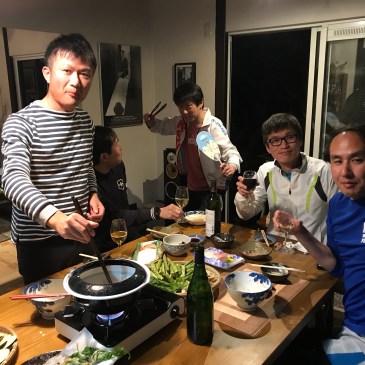 疲れ果ててるはずのメンバーですが、夕飯は皆で焼肉&天ぷらパーティで大盛り上がり。 何を話してるって、例えば「50km走れって言われるのと10km泳げって言われるのどっちが嫌だ?」とか。それを真剣に議論している。や … 続きを読む : 合宿 夜