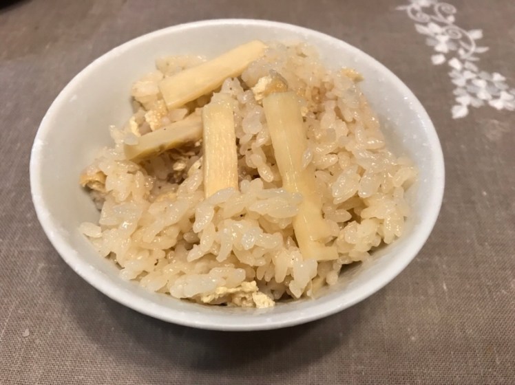 夕方、外出から家に帰り家内が筍ご飯を作ってくれました。
