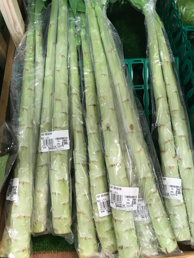 今日、朝の釣り、食事の後、次女の婚約者の彼が自転車に乗ってみたいと言うので、自分の自転車のサドルを高くして二人でサイクリングに。家から15kmほどの道の駅ローズマリー公園へ向かいました。着いて直産物売場をうろうろしていると何やら見慣れない野菜を発見。ラベルを見るとなんと“レタス”と書いてある!