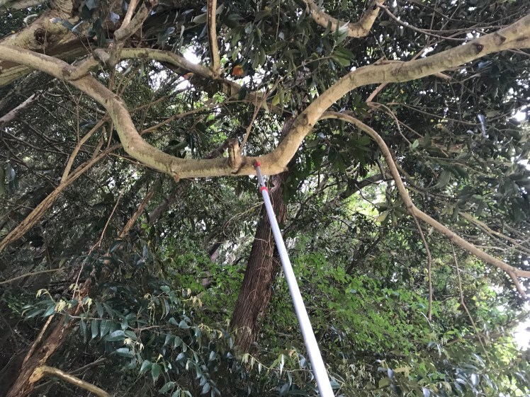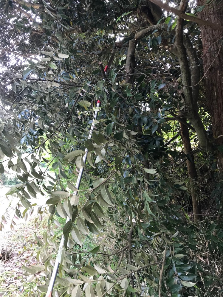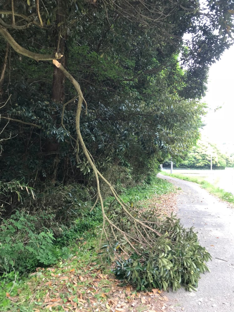 家の敷地斜面から出た枝が道路の上まで伸びてちょっとしたトラックだと引っかかるくらいになっています。