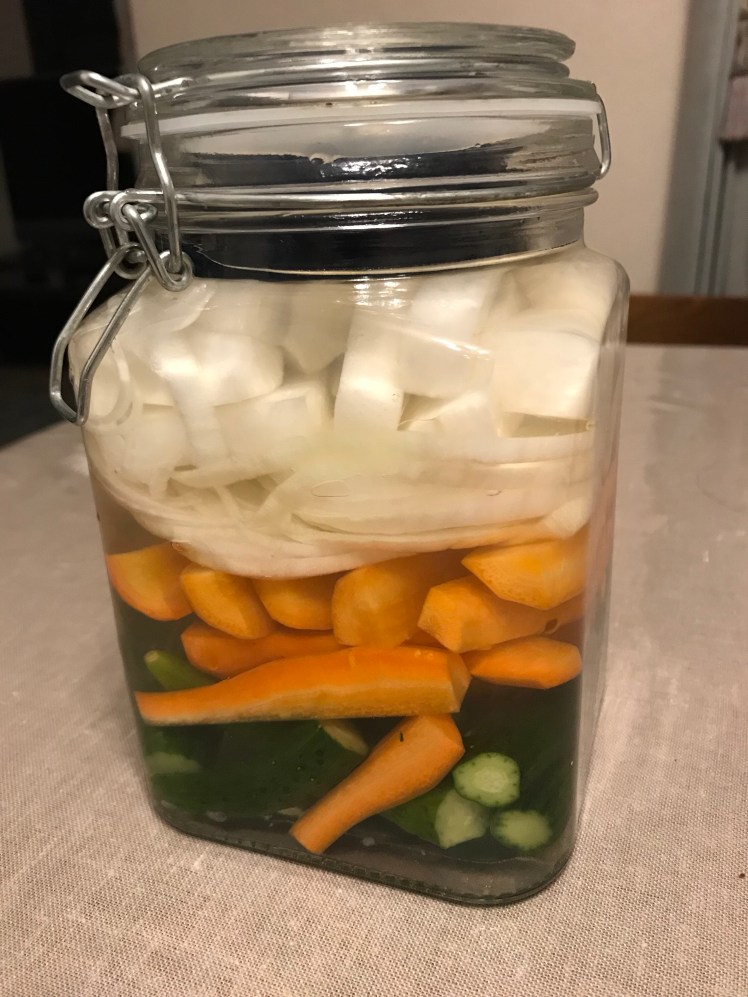 新玉葱 投稿日: 2018年5月20日 投稿者: Hiroaki Fujii 今日、近所のお婆さんから畑で採れた新玉葱を頂きました。 スライスしてドレッシングかけて食べると美味しいよと。確かに柔らかくてみずみずしい。道の駅で買った新鮮野菜と合わせて先ずはピクルスを。 酢は楽してミツカンのレモン簡単酢。 明日が楽しみ。 共有: Facebook で共有するにはクリックしてください (新しいウィンドウで開きます) Facebook いいね 読み込み中…