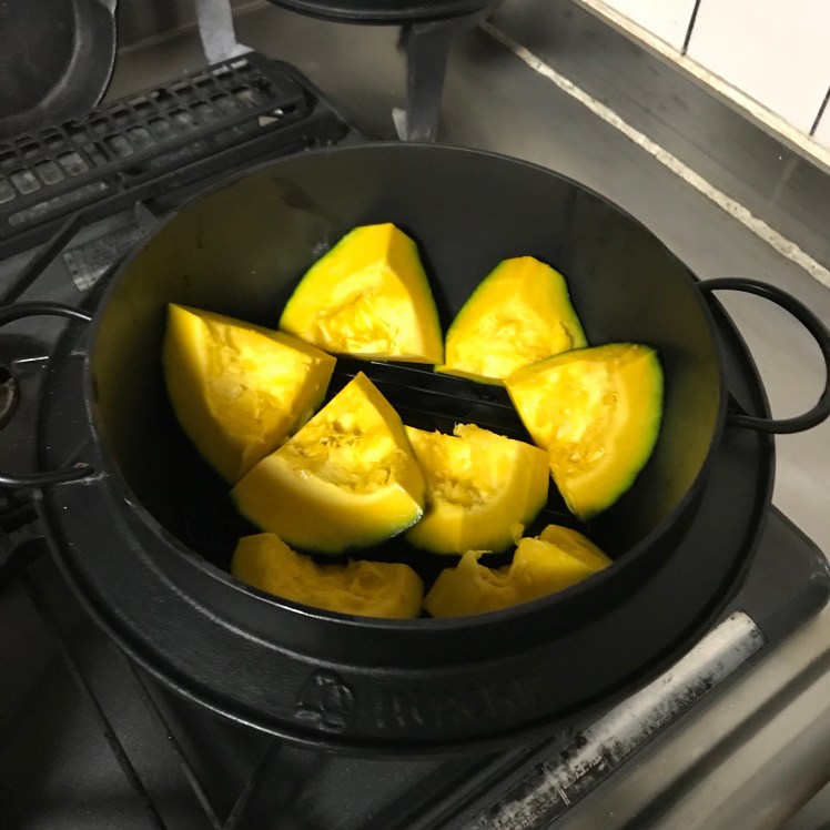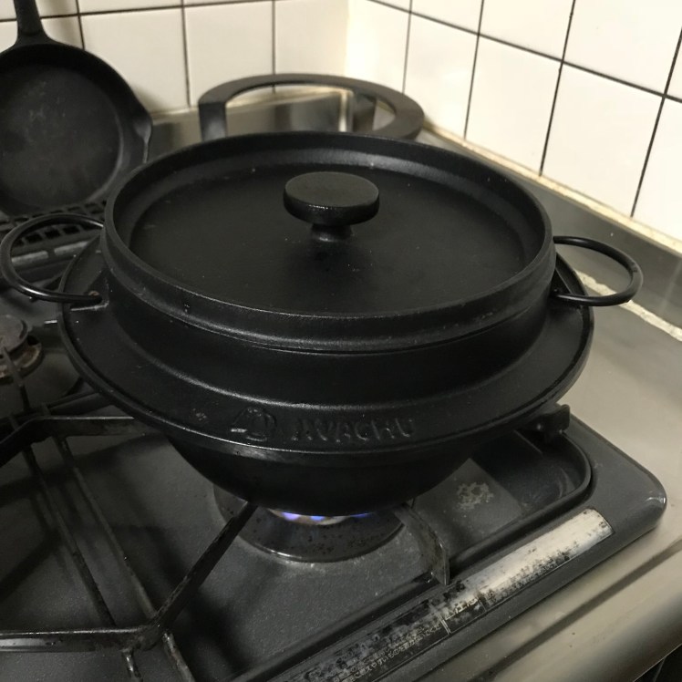 早速割って、今回は鉄釜で水を少し敷いてひたすら熱し蒸す感じで。