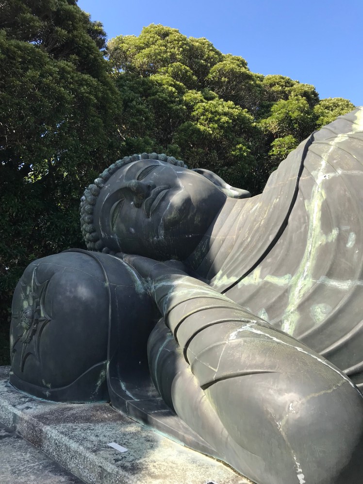 青銅製、体長16m、重さ30t。昭和57年建立ということで古くはないのですが、その眠っているお顔がとても穏やかで見ている方も心穏やかに。