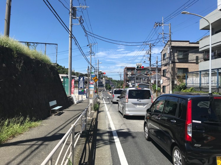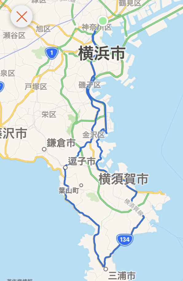 三崎口の駅近くの交差点で折り返し、葉山方面に北上。行きが向かい風だった分、帰りは追い風で猛暑の中ではあるものの比較的精神的には楽に。