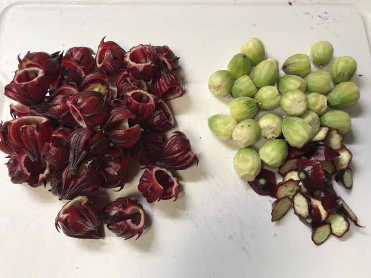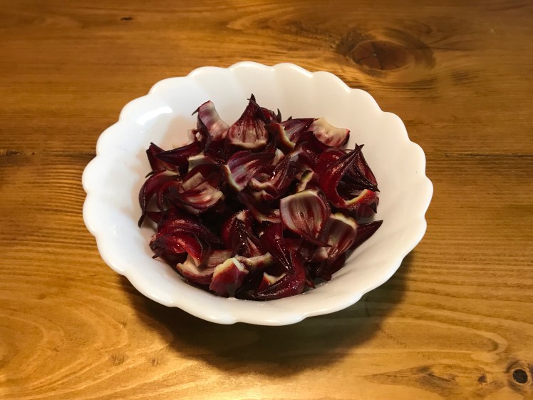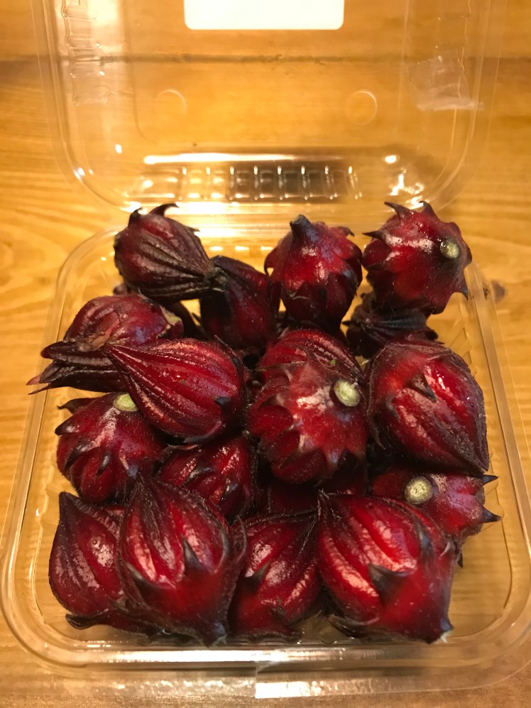 ハイビスカスローゼル。1パック200円。お茶にすると美味しいというのでネットでレシピを調べ挑戦。