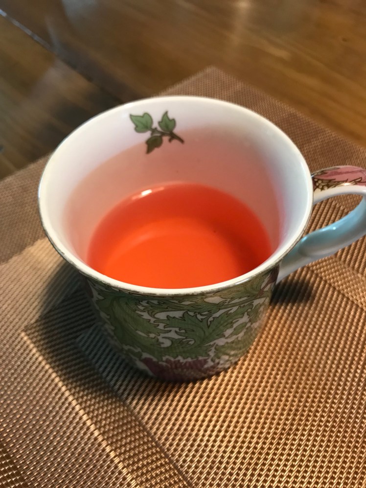 ハイビスカスローゼルの香りと酸味、それに蜂蜜の甘さ。そして綺麗な色。これもなかなかいけます。きっと家族にもうけそうです。