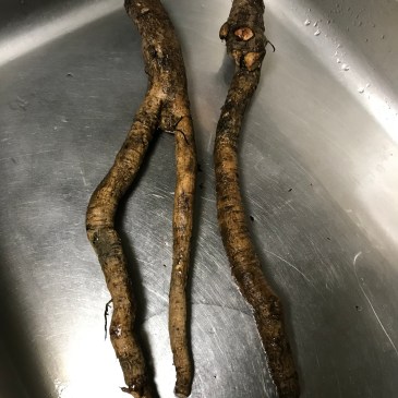 道の駅「富楽里」で地のゴボウを購入。人間の身体みたいな形です。 夜、皮をむき、さっと水でアク抜きした後、ストーブの上で煮込んでみました。 薪は家の周りの雑木を乾燥させていたものだから燃料代はタダ。煮物にはストーブ、有効で … 続きを読む : ごぼう