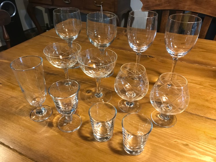 色々ありましたが、模様がなくシンプルでなるべくガラスが薄く、脚の細いので形を違うもので選んで全部で12個。