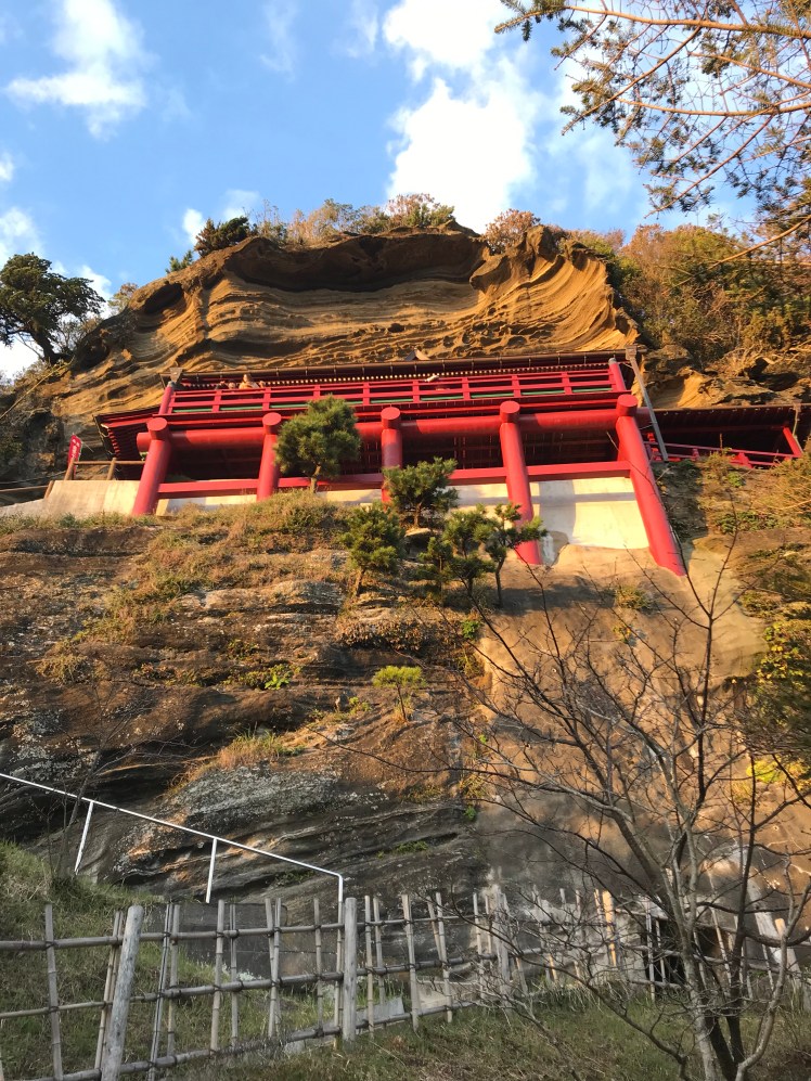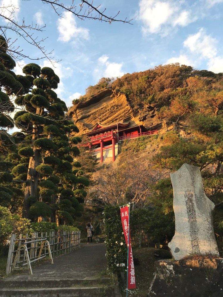 昨日、家族を連れて夕方、船形の崖観音へ。